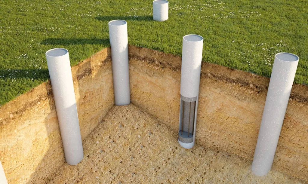- Pile Foundations: Extend deep into the ground, bypassing unstable upper layers and reaching stable strata.