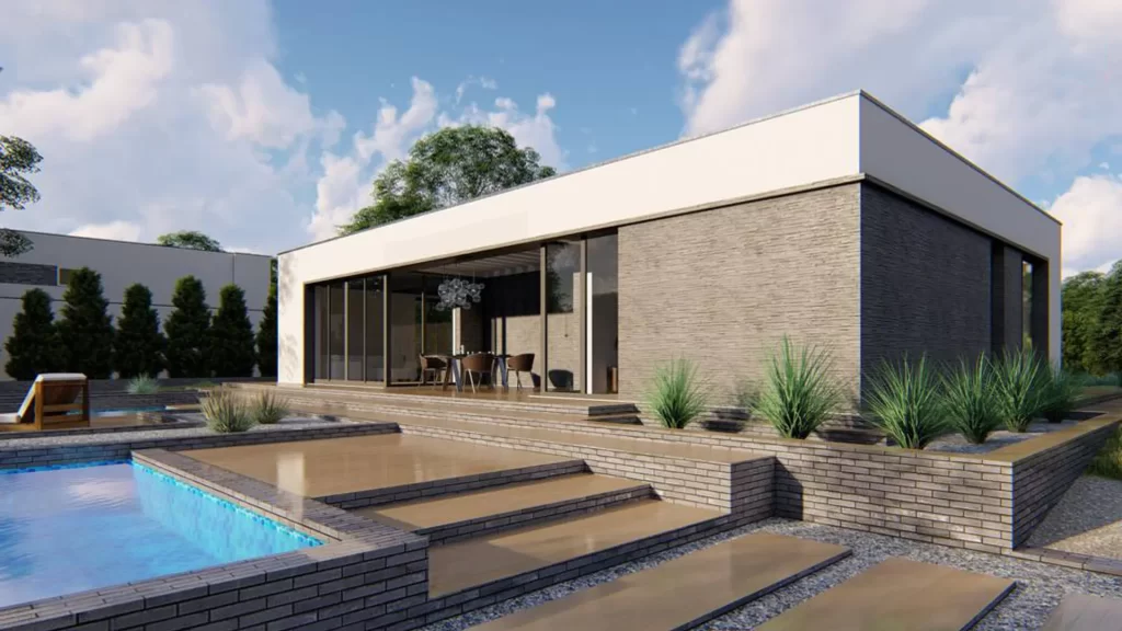 Single-Story Modern Home with a Flat Roof and White Facade
