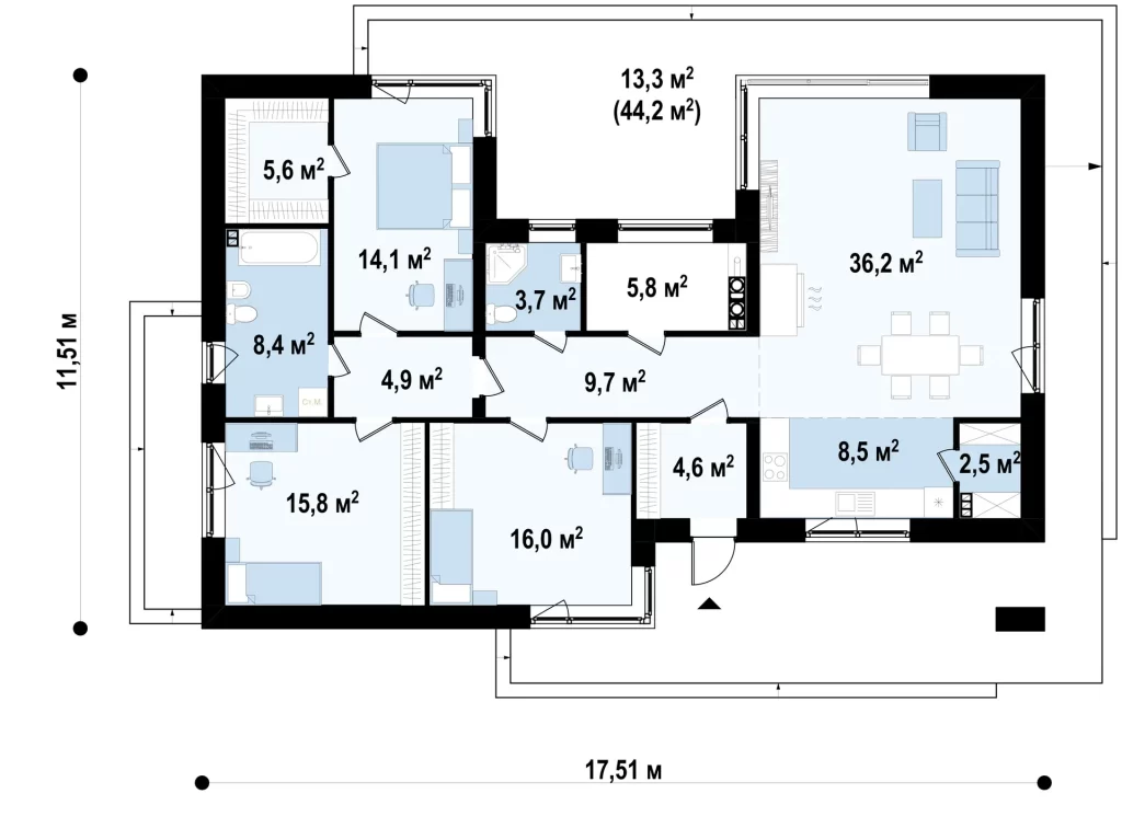 This project is ideal for individuals who value comfort and coziness. Despite its minimalist architecture and understated exterior, the house exudes elegance, style, and sophistication.