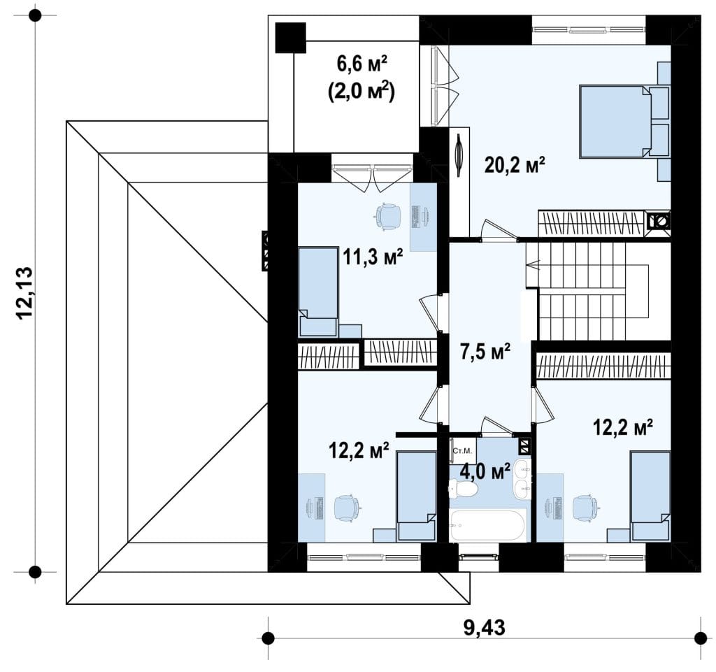 • Bedroom 3: 122 sq. ft. (11.3 m²)