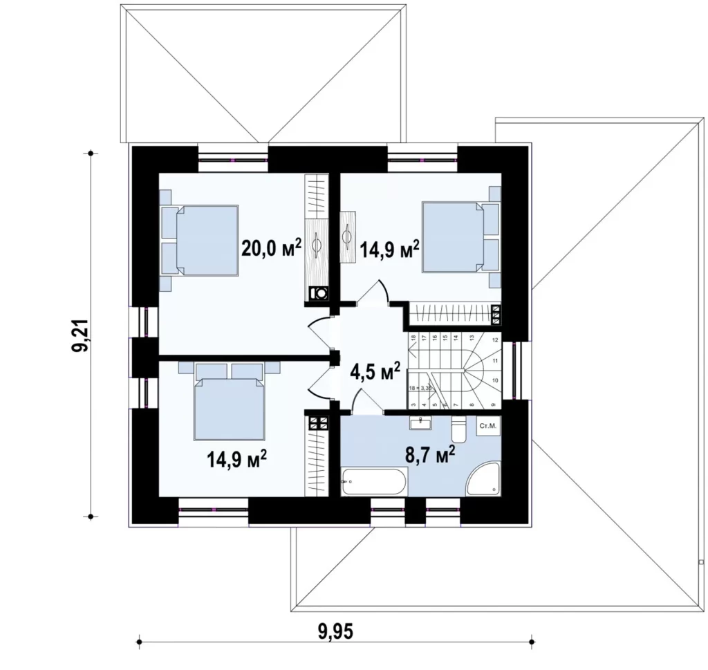 • Roof Area: 1,475 sq. ft. (137 m²)